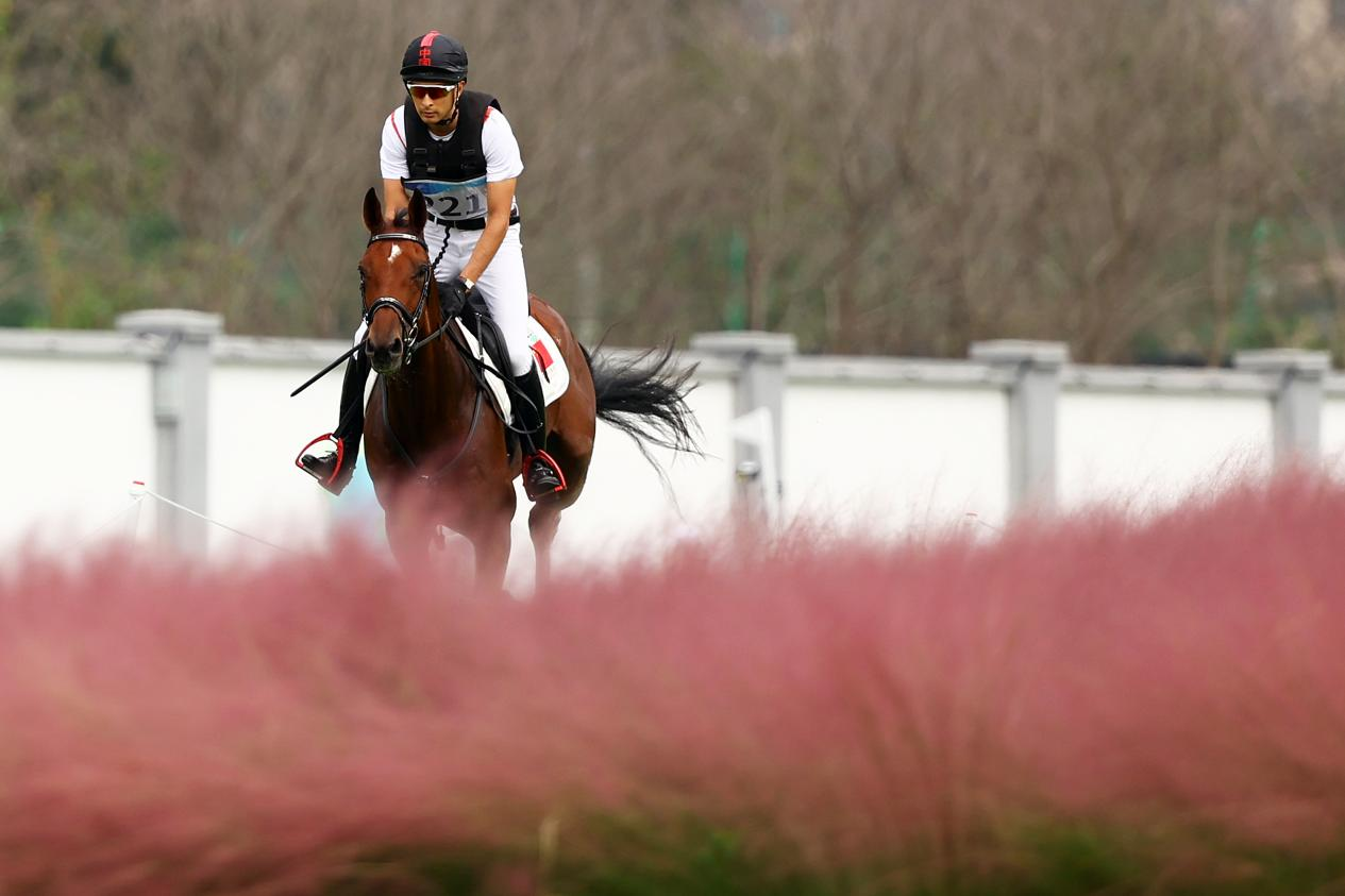 华天在杭州亚运会马术三项赛越野赛上搭档“海王”