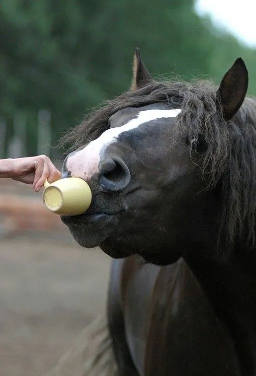 马不像猫猫狗狗那样舔水。马和牛、骆驼及其他大型哺乳动物一样,通过撅起的嘴唇吸水。如果下次马喝水的时候你仔细听,你可能会听到吮吸的声音。