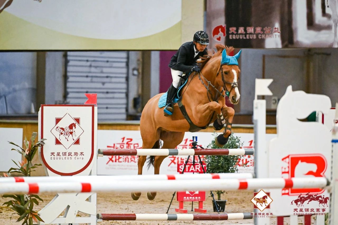 在一轮+即时附加赛中零罚分完赛的共有5对人马组合。代表内蒙古漠野马业参赛的陈贺其勒图搭档“旺福”以附加赛31.36秒的完赛时间赢得了1.25M级别冠军,足足比亚军人马组合快了近3秒。