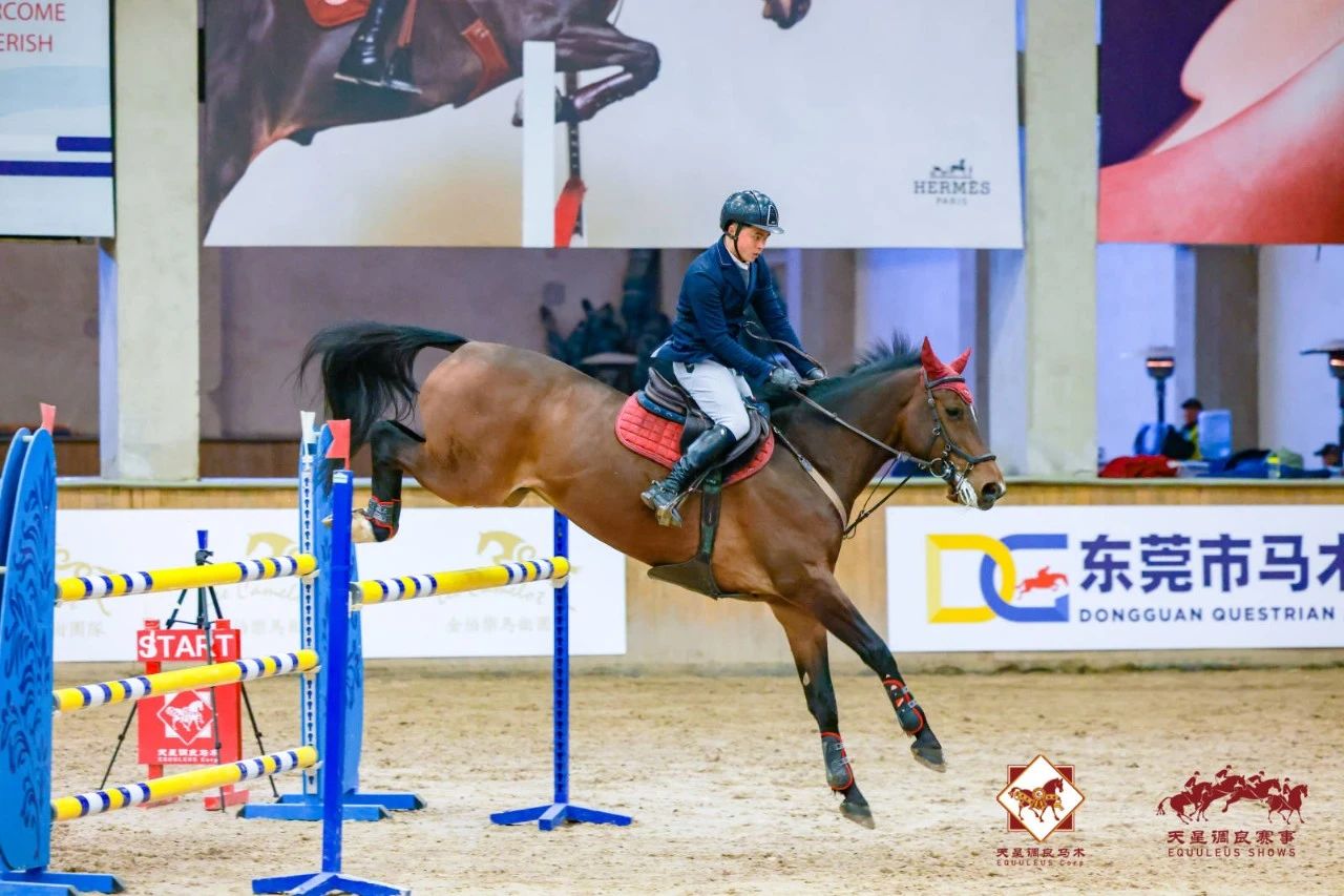 那青搭档年仅7岁的“蓝玉”第一次来到1.35M级别,他这样评价第一轮路线:“路线难度适中,相较于室外赛,这样的室内赛回转更小,障碍之间距离更短,对我搭档的年轻马很有挑战性,但我对这匹马很有信心。”