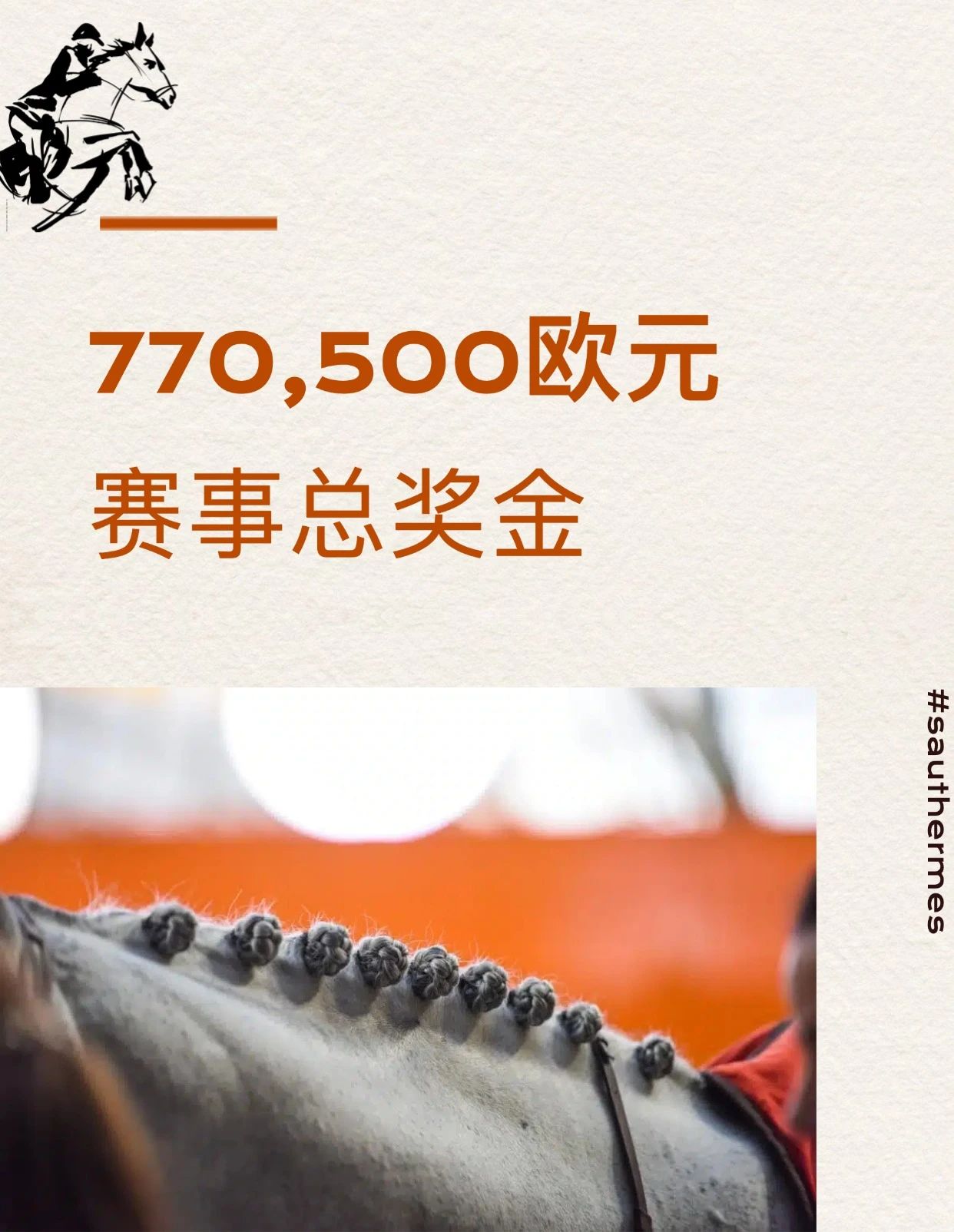 在这10场比赛中,奖金最高的是3月23日(周日)举办的最后一场比赛——爱马仕大奖赛(Grand Prix Hermès),是唯一一场1.6M级别的比赛,奖金达到40万欧元。