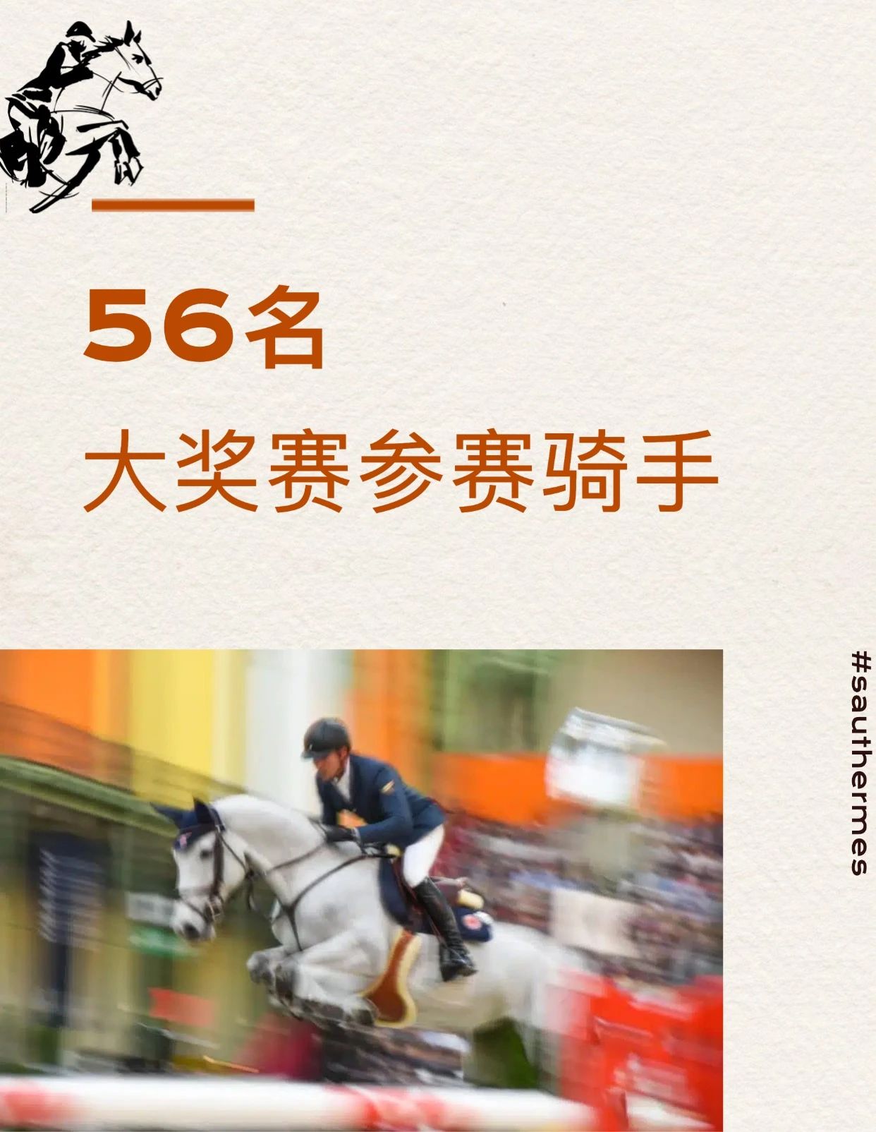 参加第15届“跳跃,爱马仕”马术障碍赛五星级比赛的是来自19个国家的56名骑手,他们一共带来了110匹顶尖运动马。今年的五星级比赛共有6场,比赛将非常激烈。