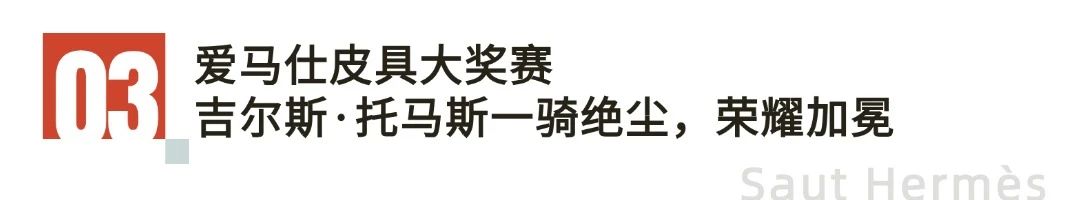 3月21日(周五),在爱马仕皮具大奖赛(Prix Hermès Sellier),同时亦是周日爱马仕大奖赛(Grand Prix Hermès)资格赛中,比利时骑手吉尔斯·托马斯(Gilles Thomas)一马当先,力压世界排名第四的瑞士骑手马丁·福斯(Martin Fuchs)。马丁·福斯则在当天率先开赛的巴黎大皇宫大奖赛(Prix du Grand Palais)中,搭档爱驹“Commissar Pezi”夺冠。