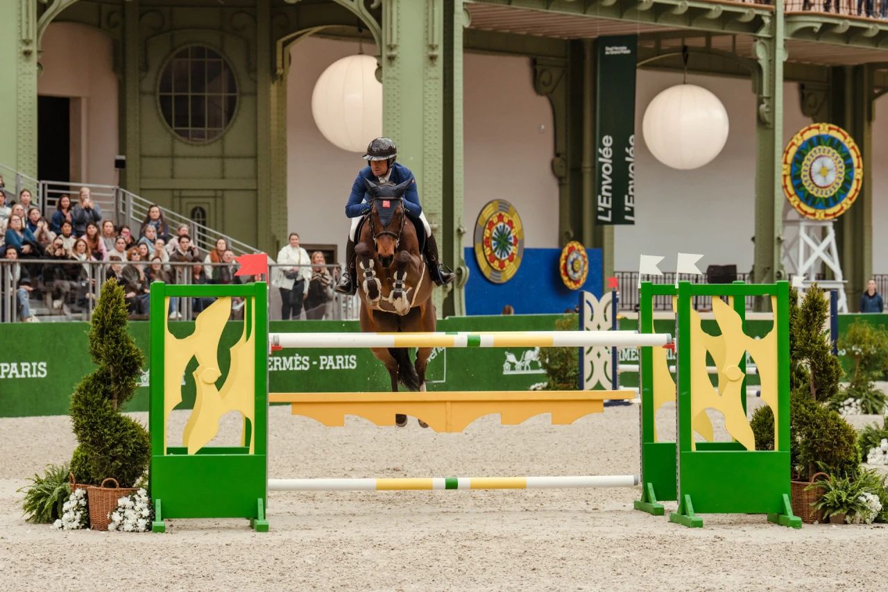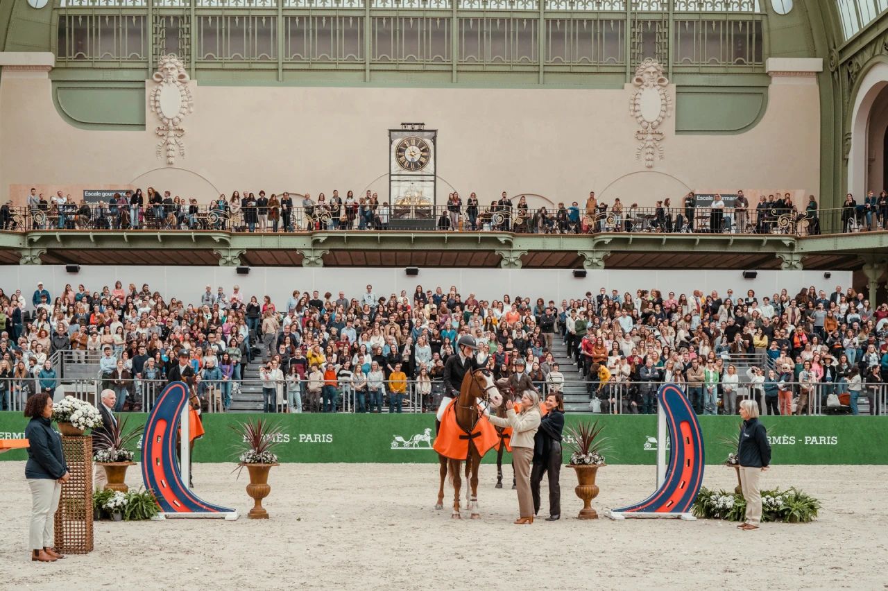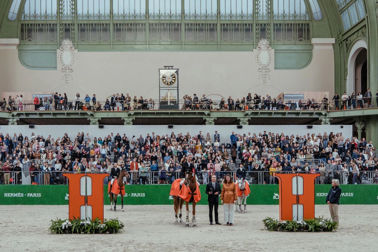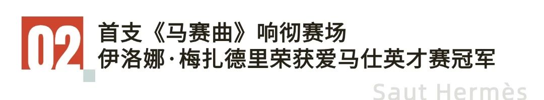 在面向25岁以下年轻骑手设立的爱马仕英才赛(Talents Hermès)中,20岁的法国骑手伊洛娜·梅扎德里(Ilona Mezzadri)站上最高领奖台,于巴黎大皇宫内聆听《马赛曲》的激昂回响