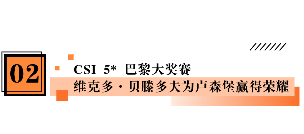 CSI 5* 级别的巴黎大奖赛(Prix de la Ville de Paris)拉开最后一个比赛日的序幕。卢森堡骑手维克多·贝滕多夫(Victor Betendorf)搭档 “Cancun Torel Z”,以最快速度力压意大利骑手埃马努埃莱·高迪亚诺(Emanuele Gaudiano)与阿联酋骑手***·阿卜杜勒·阿齐兹·阿尔马祖基(Omar Abdul Aziz Al Marzooqi)。