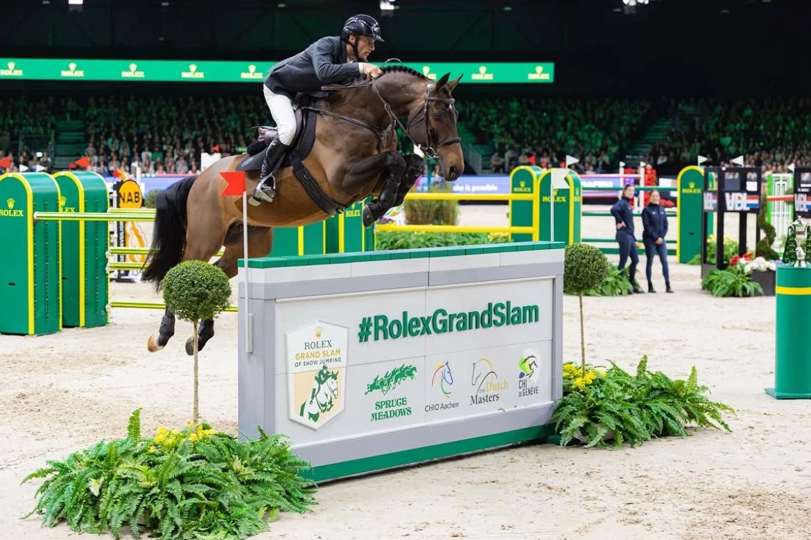 劳力士代言人理查德·沃格尔在荷兰马术大师赛劳力士大奖赛中搭档“United Touch S”