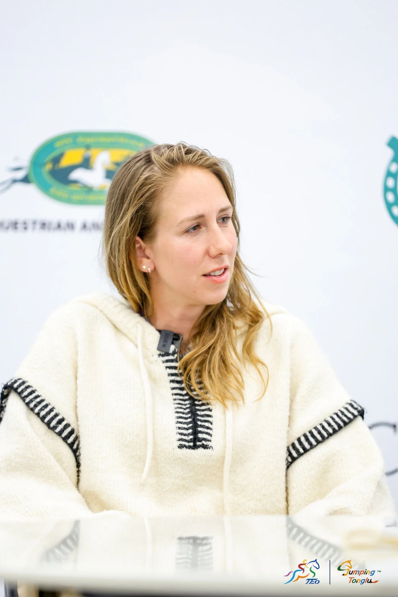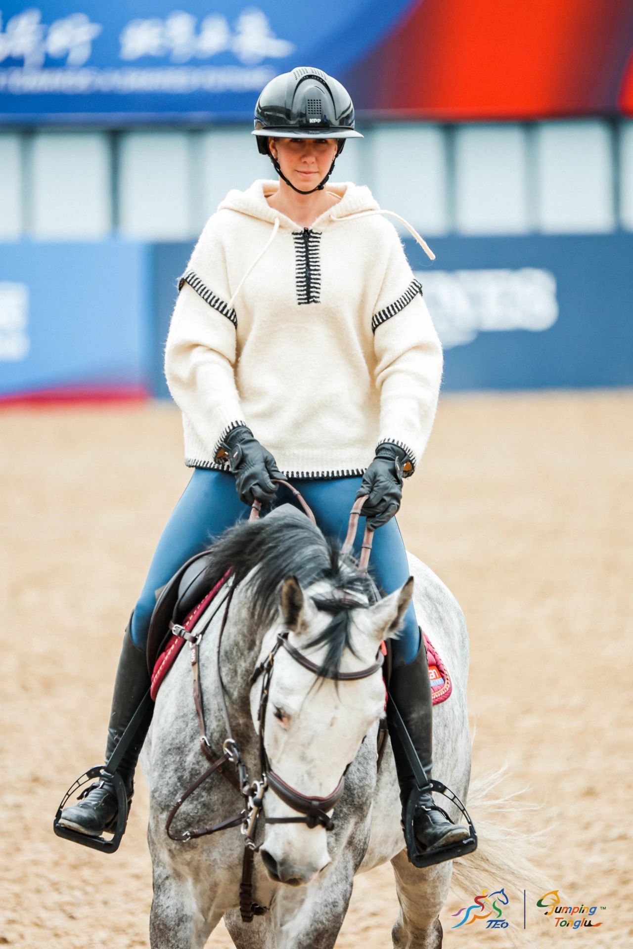 Gabryella受到Saul的邀请前来参加这场特别的比赛,她坦言自己喜欢杭州马术中心的赛事设施和周边山水环境,也为本次比赛做了不少准备:“Saul是我相识多年的朋友,他推荐我参加这场特别的比赛。我搭档一匹七岁马以及另一匹更加成熟的马参加比赛。我和两匹马在上海磨合了几天,相互熟悉了一下,两天前来到桐庐继续训练。我觉得四天的磨合让我们加深了彼此之间的联系,期待比赛中能取得好成绩,但最重要的还是享受比赛。”