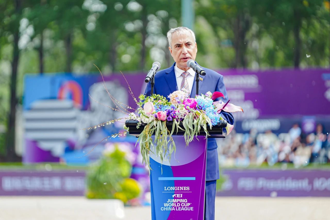 本次,2025浪琴表国际马联场地障碍世界杯中国联赛北京站由国际马术联合会(FEI)、中国马术协会、北京市体育局联合主办。在开幕式上,国际马术联合会**、国际奥委会委员、夏季奥林匹克国际单项体育联合会协会**英格玛·德沃斯作为联合主办方致辞。
