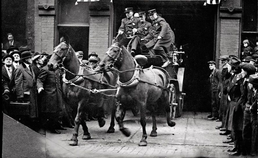 今天的消防车轰鸣着穿梭街头,飞驰而过。但在一个多世纪前,当城市上空响起火警钟声,最先冲出消防局大门的,不是消防车,而是披挂整齐的马。