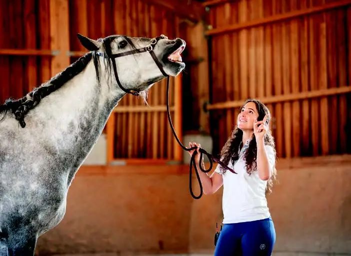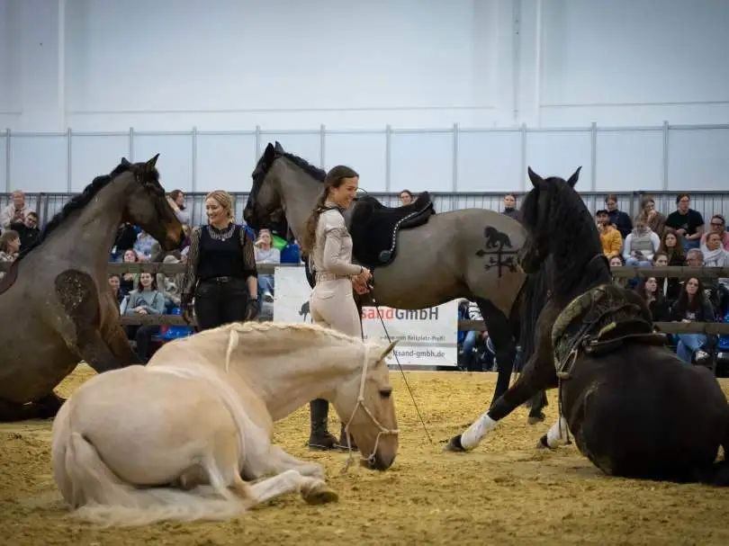 在2025年3月的德国埃森世界马术博览会上,《马术》杂志记者目睹了肯齐·迪斯利(Kenzie Dysli)展示她那独特的自由马术技艺。她与多匹骏马共同舞动,每一次轻盈的步伐和灵动的指令,都是心灵与马匹之间深刻对话的演绎。