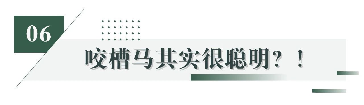 并且在实验获取数据的过程中,有90%以上的马主表示他们的咬槽马“聪明、好学、表现好”。也许这正是需要思考的问题,咬槽癖也许不仅仅是“坏习惯”,而是一种伴随更高反应性、更强学习能力的表现形式。