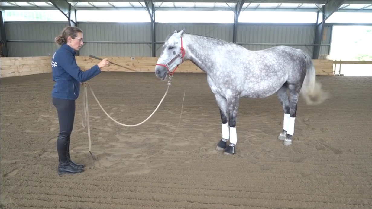 每次训练,总是从最轻的压力开始。因为马很敏感,即使是一只苍蝇落在身上,你的马也能感觉到。在马群中相互交流时,马只是通过一个眼神或轻微的动作就能对彼此施加压力。这就是你应该在平地训练中设定的意图。
