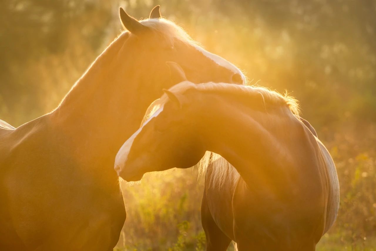 马匹之间的互啃行为是它们社交中最常见互动之一。这种行为通常发生在关系亲密的马匹之间,比如长期生活在一起的同伴或母马与小马。当一匹马用牙齿轻轻啃咬另一匹**脖子、肩部或背部时,实际上是在帮助对方清理难以触及的皮肤部位,互相梳理毛发。研究发现,互相理毛可以降低心率和血压、减少皮质醇的分泌、增强免疫力、提高内啡肽水平,对马匹健康起到积极作用。