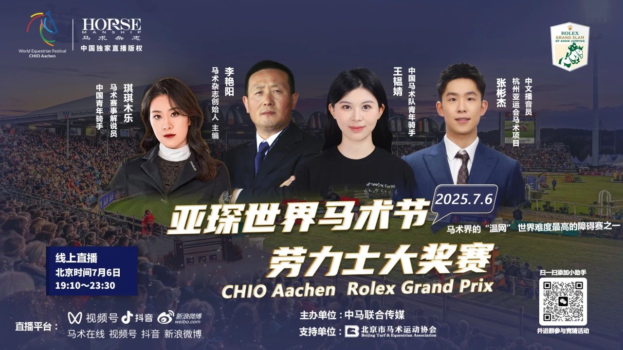 今年的赛事将于北京时间7月6日19:10开赛,《马术》杂志、马术在线带来独家版权直播,邀请王韫婧将作为中文解说嘉宾, 为中国观众带来一场真正的“马术盛宴”。