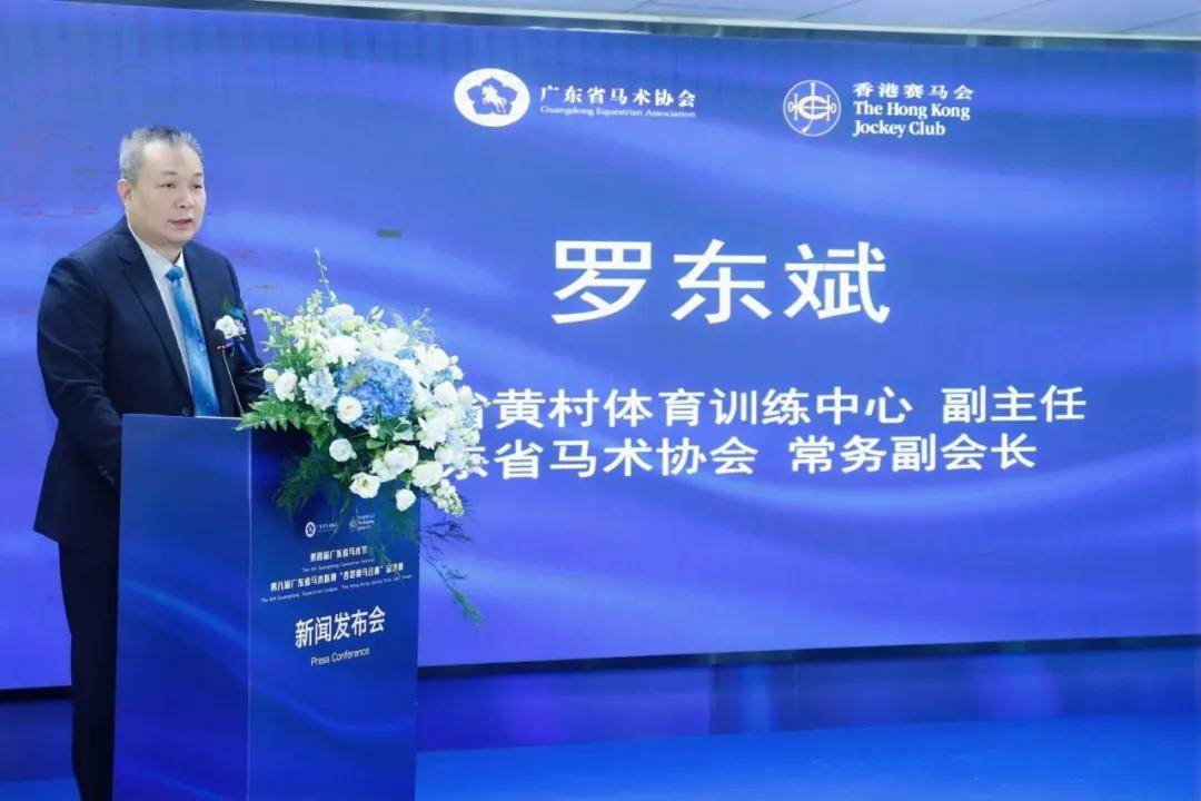 发布会伊始,广东省黄村体育训练中心副主任、广东省马术协会常务副会长罗东斌为本次活动作了详细介绍。他表示,第四届广东省马术节?第八届广东省马术联赛“香港赛马会杯”总决赛将于2026年1月10日至11日在广东省黄村体育训练中心国际马术场举行。
