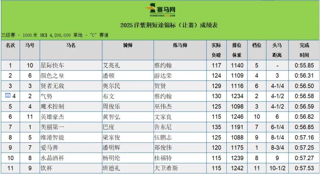 “星际快车”在骑师艾兆策骑下,为这位十三度获封香港冠军练马师的蔡约翰夺得了自2022年以来在洋紫荆短途锦标中的第三场胜利。此前,蔡约翰曾凭借“喜劲宝”(2003年)、“华恩庭”(2017年)、“首映”(2018年)、“好眼光”(2023年)及“嫡爱心”(2025年)五匹良驹在该赛事中获胜。
