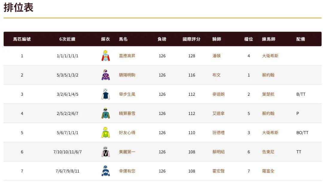 董事杯马匹排位表