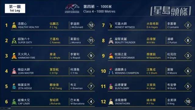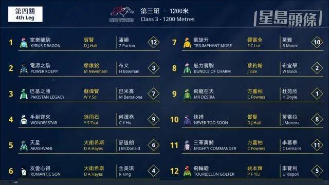 浪琴国际骑师锦标赛,四关骑师赛配马结果如下:
