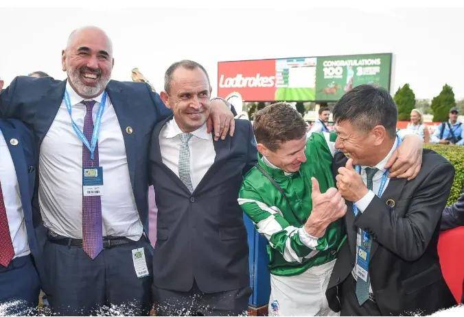 马主张月胜(右一)、骑师麦道朗(右二)、练马师华礼纳(左二)图片来自澳马Aushorse