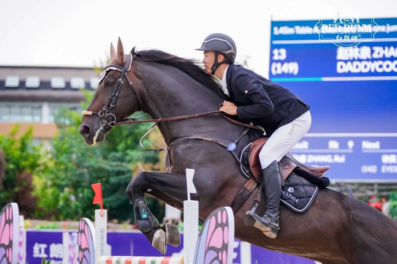 青少年骑手赵林泉搭档“Daddy Cool Go”敢于尝试更小的回转,但不幸打落一道障碍横杆,以4罚分完赛,完赛时间为48.43秒。徐昊搭档“Eyes Blue de la Sina”以零罚分完赛,完赛时间为49.88秒。姜志祥搭档“小V”以4罚分完赛,获得第四名。当日,还进行了110CM两段赛和130CM即时附加赛。在130CM即时附加赛中,9对人马组合成功进入附加赛。来自京格尔嘉豪马术的骑手孙瑞睿搭档“Zarah 55”以附加赛零罚分、37.39秒的完赛时间获得冠军。他们的完赛时间比排名第二的人马组合——来自铭骏马术俱乐部的章汐和“Loksly VD Broekkant”快了近四秒,可见孙瑞睿选择的路线足够大胆。季军人马组合是来自德润马房的骑手薛子桐和“Convent”,他们在附加赛中以零罚分完赛,完赛时间为47.90秒。