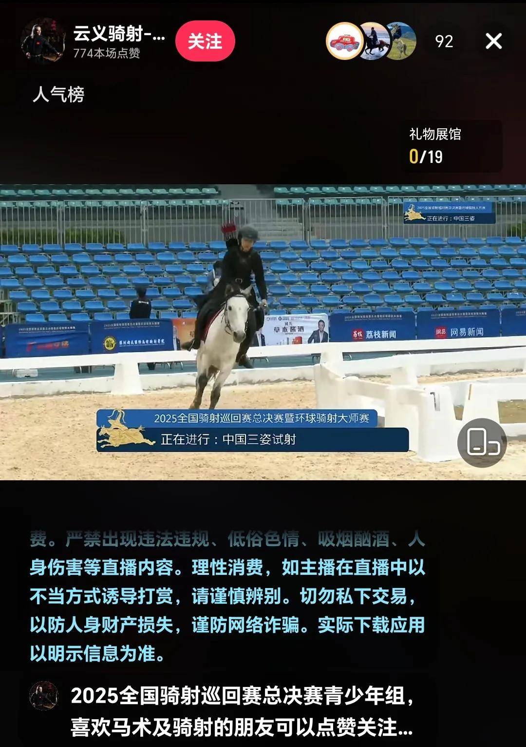 2025全国骑射巡回赛总决赛暨环球骑射大师赛的多项精彩赛事也将通过广州一马赛马进行直播,方便无法亲临现场的观众通过多种网络平台收看。观众可以在抖音、微信视频号等多种渠道收看以上赛事直播。