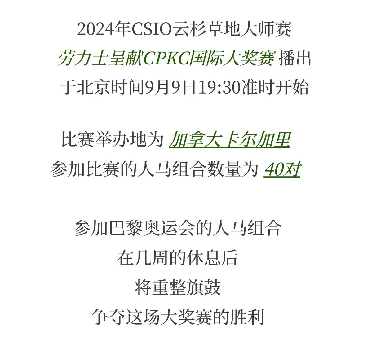 莱奥波多·帕拉西奥斯(Leopoldo Palacios)为云杉草地已经工作了26年,曾为2000年悉尼奥运会和2008年北京奥运会设计过路线,他说:“在我看来,劳力士呈献CPKC国际大奖赛的路线,比奥运会路线更长、更难,障碍更大。在云杉草地的赛场,我们有从1974年以来每一届奥运会和世锦赛上收集来的障碍,所以路线总体看起来更加亮眼。”