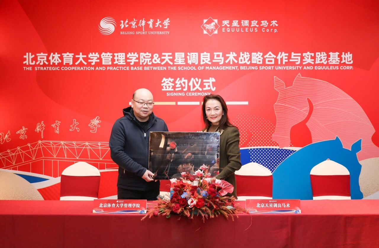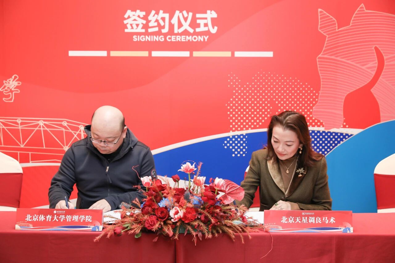 1月17日,北京体育大学管理学院&天星调良马术战略合作与实践基地签约仪式在天星调良马术举行。