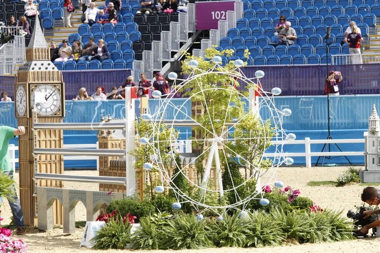 马术在线记者身后的是来自2012年伦敦奥运会的障碍架,不过已经换上了定制的长障碍杆