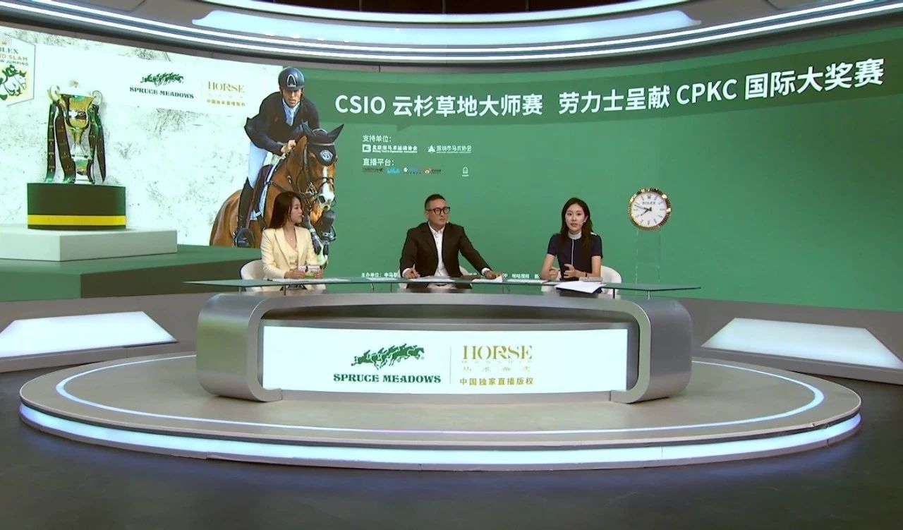 @马术在线的直播间内,主持人庞博与解说嘉宾刘同晏、李艳阳和琪琪木乐对接下来的比赛也十分期待。线上各平台观看人数持续增长,评论区的讨论气氛高涨。