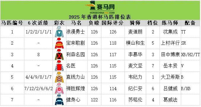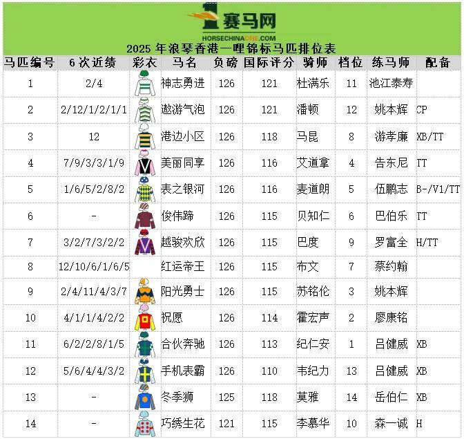 ▲2025年浪琴香港瓶马匹排位表