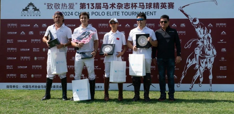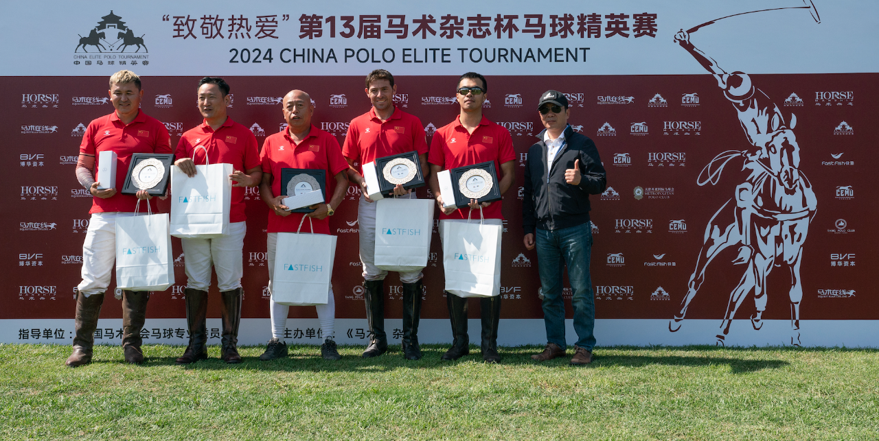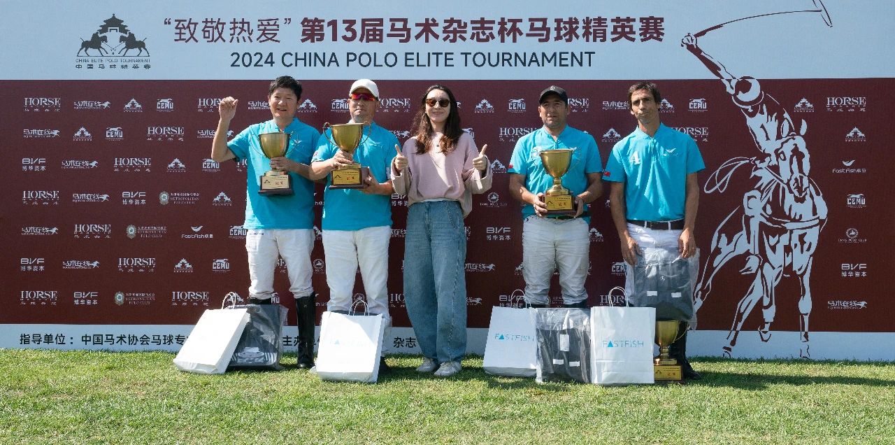 经过9月21日~22日两日鏖战,快鱼队从四支队伍中脱颖而出,夺得了2024年马术杂志杯中国马球精英赛的冠军。当快鱼队球员饶忠明、李艳阳、罗德里格·布拉达(Rodrigo Bauzada)、马塞洛·索勒(Marcelo Soler)共同举起象征着荣誉的银色奖杯时,全场响起了欢呼声。
