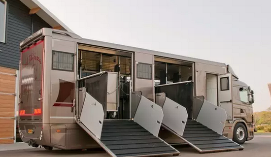 除了对车速有严格控制外,车内的地面还铺有防滑材料(如橡胶垫)、防护软包,以及用于排放液体的排水孔,防止马匹在运输过程中不慎滑倒受伤。另外车辆还会装配用于降低车辆颠簸程度的防震系统,车辆底盘也经过特别改装,配备了带有减震气囊的悬架抗震系统。运输车厢内部拥有照明装置,这样能让随行的兽医和马工随时观察马匹的状况。这一切都是为了确保马匹能够顺利抵达赛场。