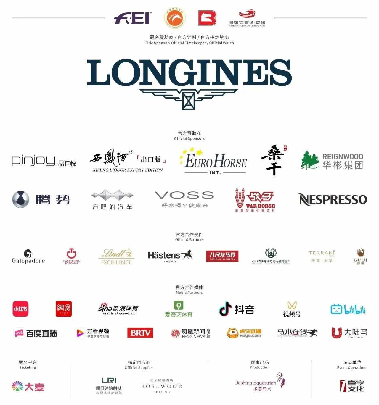 今年的比赛继续创造赛事与品牌合作的典范,将形成一个涵盖多领域的赞助商体系。除了具备相同品牌价值的浪琴表将继续作为冠名赞助商,和北京国际马术大师赛共同开启第二个十年的合作,继续打造国内赛事与国际品牌深度融合的典范之外,还将有更多新老合作伙伴加入到赛事大家庭中来,长城桑干、Nespresso奈斯派索、EuroHorse、pinjoy果蔬昔、华彬集团携VOSS与战马、西凤酒、腾势与方程豹等,这些优质品牌成功找到了与赛事的完美契合点,让高贵、典雅、时尚、激情的精神元素继续深入人心,必将开创一个合作共赢、共同成长的崭新局面。