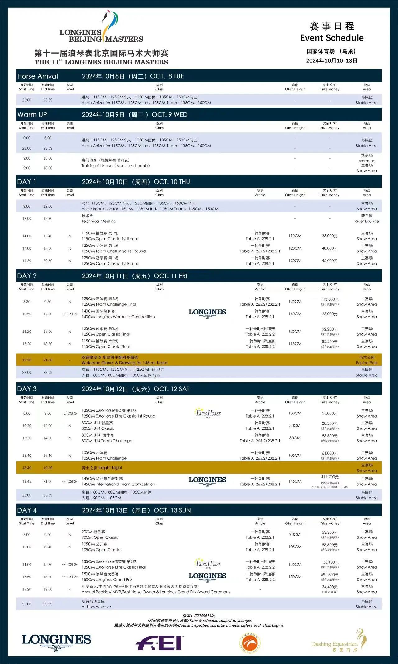 浪琴表北京国际马术大师赛始终把观众体验放在首位,致力于打造一场观赏性、参与性兼具的马术嘉年华,无论是呼啸而过的紧张刺激,还是优雅高贵的绅士浪漫,只有亲临现场才能真切感受到这项运动独一无二的魅力。为了进一步提升广大观众的体验,赛场之外,最受观众喜爱的“马术公园”今年再度升级,推出了全新互动马文化体验,旨在打造集“吃喝玩乐行住”的一站式互动体验区,让广大马术爱好者零距离感受骑士精神和马术运动的魅力。今年正值中国传统的生肖龙年,赛事期间还将设置众多充满中华传统文化气息的环节,让观众在东方与西方的碰撞、传统与现代的交融中,尽情感受马术运动带来的乐趣。