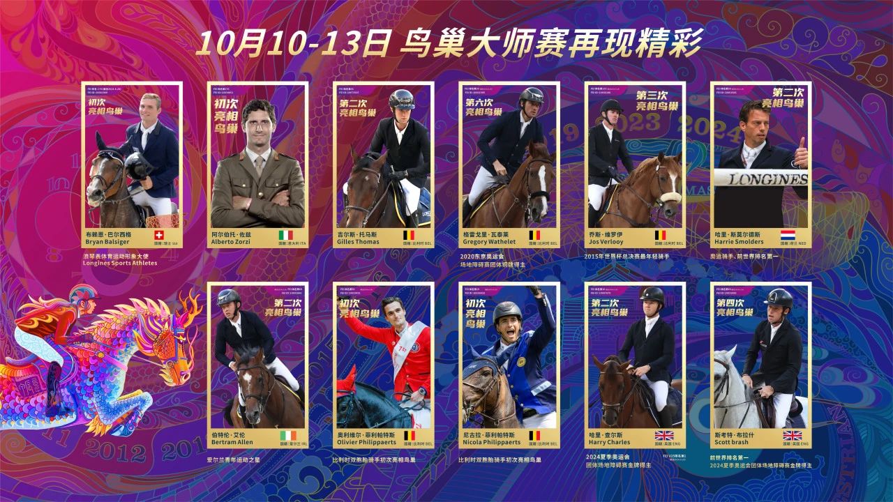 在中外马术运动交流中,浪琴表北京国际马术大师赛始终不遗余力地扮演着重要的角色,今年的赛事国外骑手的参赛阵容星光熠熠。11名国际马术巨星将齐聚鸟巢,包括浪琴表体育运动形象大使、27岁的瑞士骑手布赖恩• 巴尔西格,今年是他的鸟巢首秀。还有荷兰名将、前世界第一哈里 • 斯莫尔德斯 ,奥运奖牌得主格雷戈里 • 瓦泰莱,横扫各大五星赛事、在今年巴黎奥运会摘得金牌的斯考特•布拉什,以及现U25世界排名第一的哈里•查尔斯等。