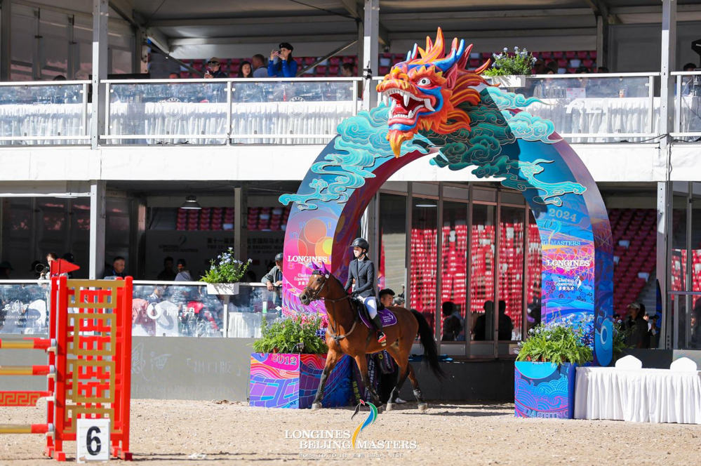 本届赛事的主视觉设计匠心独运地将马术骑手与“龙马精神”巧妙融合,整个赛场设置也将这一充满文化底蕴的概念展现的淋漓尽致。精心设计的主赛场入场龙门,让骑手们的出场更具仪式感!10月10日的首个比赛日共设有三场比赛:115CM挑战赛(第1场)、125CM团体赛(第1场)以及125CM冠军赛(第1场)。