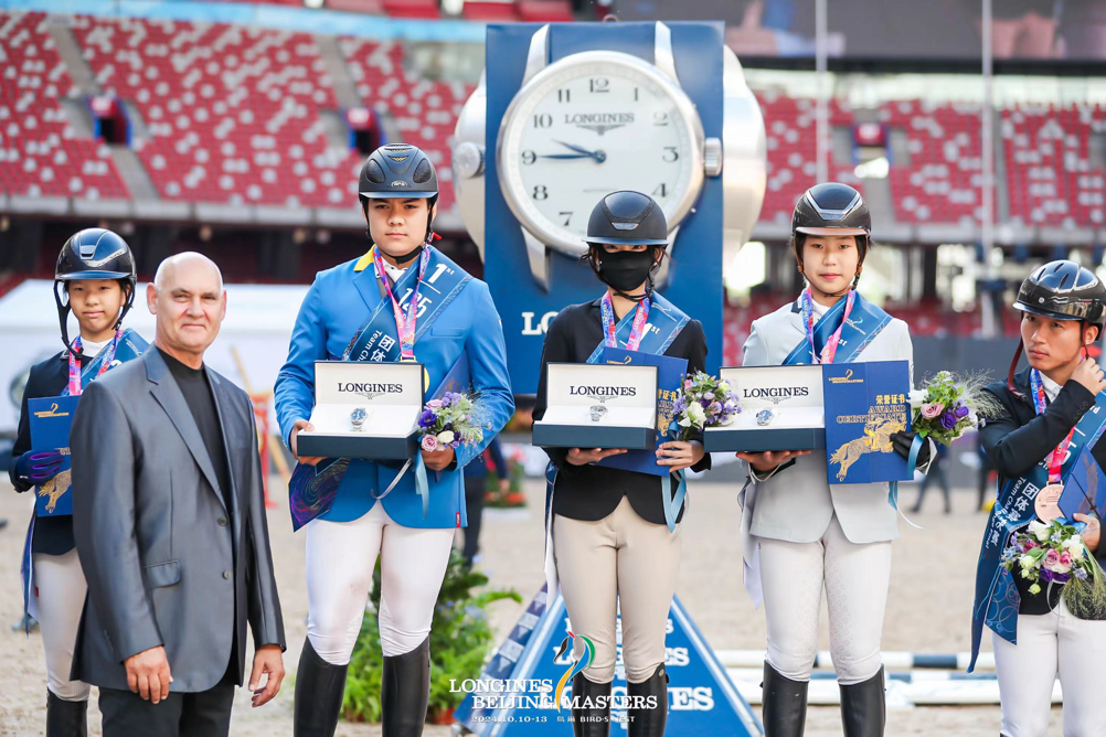 北京时间10月11日,第十一届浪琴表北京国际马术大师赛在国家体育场(鸟巢)展开第二个比赛日的争夺,今天的四个冠军全部被青少年骑手包揽,19岁的国家队骑手陈雨辰赢得了140CM的国际骑手热身赛的冠军,125CM团体赛被三位青年小骑手携手斩获,而13岁的孙瑞睿表现更为惊艳,她一人独揽125CM和115CM两项个人赛的冠军,值得一提的是,孙瑞睿在昨天的比赛中就脱颖而出,夺得了赛事的首个冠军。