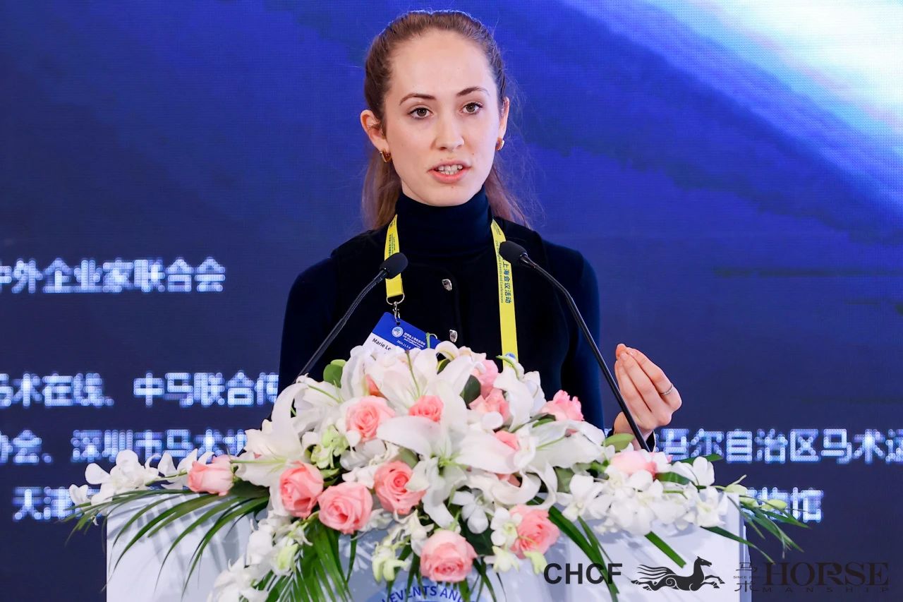 全场最年轻的发言嘉宾,Bridl马匹贸易线上平台创始人玛丽·丽娅·马克思(Marie Lea Marks)女士从新兴一代马术人的视角着眼全球,发现当下全球马术运动水平的迅速提高对优质马匹的需求增大,马匹交易的传统模式急需数字化转型,坚信通社交媒体的力量将会颠覆传统的马匹交易模式;玛丽用“路遥知马力,日久见人心”和“君子之交淡如水”等中国谚语表达了对我国文化和马产业未来的喜爱,并期许与中国达成更多交流与合作。
