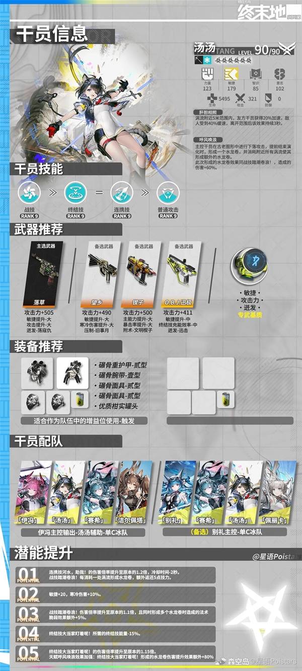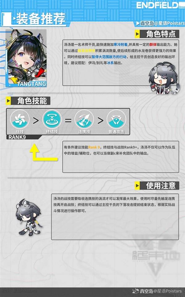 《明日方舟终末地》汤汤是1.1版本上半的新角色,拥有极强的控制能力,她的武器装备有什么好的选择呢,下面请看“星语Poistars”带来的《明日方舟终末地》汤汤详细培养指南,希望能够帮助大家。