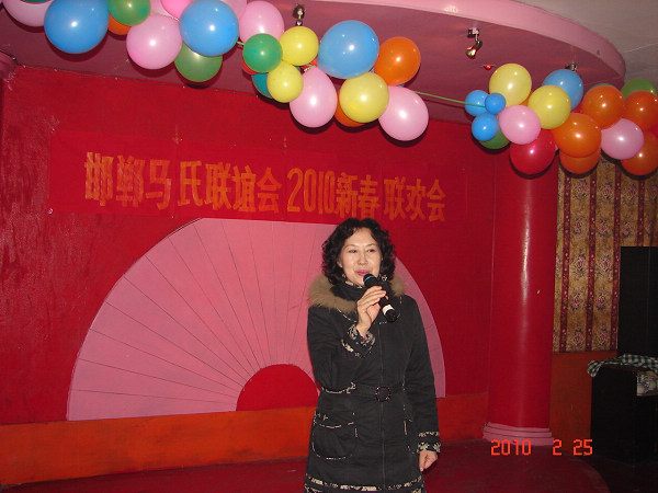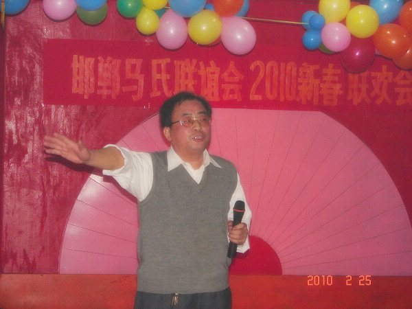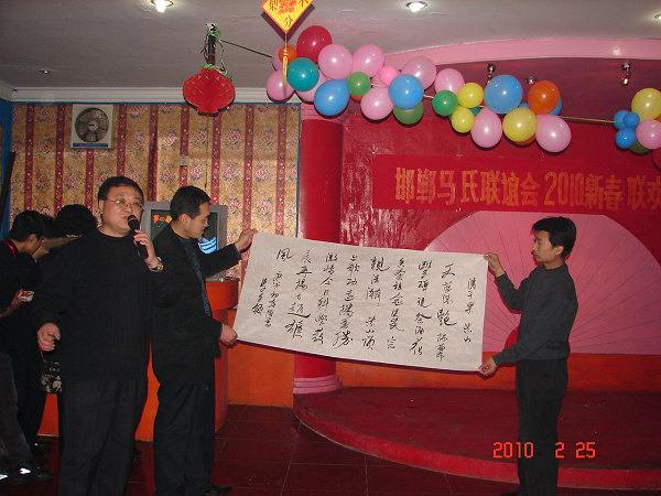 联欢会上,各位宗亲逐一自我介绍,纷纷上台表演了精彩节目。马丽国、张永捷的对唱,马幼龙的诗朗诵、马千领的题词、马卫强、马先海、马强、马文豪等等的小合唱,把联欢会推向了一个又一个高潮。年近八旬的邯郸县马氏联谊会名誉会长马国安、会长马宇英、常务副会长兼秘书长马振兴,旅居北京的著名画家马志丰也远道赶来参加了联欢会。新春联欢会自始至终洋溢着欢歌笑语,近二十二点才在宗亲们恋恋不舍的气氛中结束。